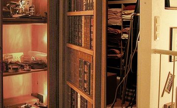 The made to order false bookcase Panels are ready to attach by simple screwing on the sides of the pretended shelves. This way your hidden doors or an unattractive wall niche gain the original look of functional library.