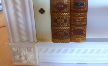The shelf characterized by significant height (above 400 mm) gives us number of alternative choices. The shelf could be filled with large magnificent volumes. There could be fake Books lying horizontally and thus giving the impression of resting on top of the Books. If the shelf is placed on the eye level, that is around 120 to 160 cm above the ground, we could install the full size Book replicas that could be picked up and admired from all sides. Such replicas could be much smaller than the height of the shelf.