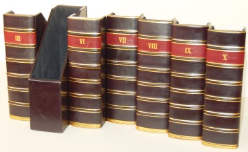 The Spines are made with the quality leather. We propose two standard measurements of the Spine width: 52 mm and 80 mm. It is advisable to plan the arrangement of the binders on the shelf in such a way as to let the binders sides be obscured by Books or by the full size Book replicas. Another solution would be to fill in the whole shelf from edge to edge with the binders, thus revealing only their beautiful Spines.